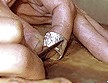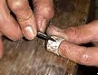 ![]() | さあぶったたき始めましょう、最初は様子を見ながら大き目の打痕をつけていきます、あまりストレスがたまってるときなどにぶったたきすぎると薬指リングを親指にはめなければならなくなり、へへ、などと愛想笑いをしてもスタッフは許してくれませんし、シルバーのの無駄にもなりますので、その事を頭にとめてあまり強く打ちすぎないよういかにも手作りアクセサリーだなーと自他ともに納得できるようにします、 |