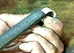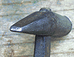 ![]() | ここから少し慎重にいきましょう、最終的なたたき目をつけるためにニズムでは、かなづちの先をこの様に削ってみました、このかな先に賭けてみましょう、 |