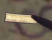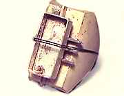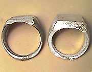 左は材料店で売っている銀の台座2〜3ドルぐらいで買えるが、厚みや吹きの仕上がりにこだわる人は、自分のオリジナルを彫金店などでゴム型としてのこしておこう、