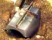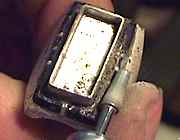 これは見ても分かるとおり、石をセットしていることろ、接着剤がある程度固まるまでは第3の手などを使って指輪じたいを平行に保とう。
