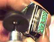 トルコ石を削るのは自分にあった方法でやればいいのだけど、ここではリューターを使ってます、慎重に。