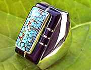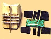 ニズムターコイスで製作するシルバーアクセサリーのトルコ石を使ったモザイクジュエリーは手間はかかるけど、センスのいい作品に仕上がります、人気の高いモザイクをいっしょに作ってみよう!、ということでここに登場。キャストなどを使ったシルバージュエリーなどとは違って少し面倒くさいね、でもロー付けもうまくなるし、インディアンジュエリーの制作にもとっても役に立ちます。ぜひチャレンジしてみてください。 このての手作りアクセサリーがすばらしいのは色の配色によっていくつものジュエリーの”顔”を持たせることができることと、これこそ手作りの醍醐味だなー、と出来あがったときの充実感です。ただ仕切の(シルバーの)壁を作ってそれに合わせて石をはめ込んでいくだけの単純なものなのでぜひこのアクセサリーにも挑戦してみてください。