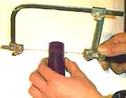 シルバーリングのサイズを考えてカットするのですが、糸鋸の刃はハードワックス用でないときれないので注意しよう、