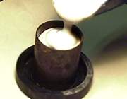 フローポイントとは銀が完全に溶けてクルッと丸まった瞬間のこと、このとき一気に遠心鋳造機を回転させるわけです、長々火をかけすぎると酸化してしまう。