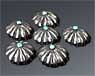 ●コンチョ、、チョッと聞きなれない言葉ですね、でもとても魅力的なシルバージュエリーですね、洋服につけたり、帽子を飾ったり、バッグなどにこれでもかと取り付けて自慢してみたり、インディアンジュエリー感覚抜群ですね、しかし製作者にとって少し大変なことがあります、1から制作するタガネです、シルバーショップの技量そのものであるタガネに気を抜くことは出来ません。そしてその申し子(?)であるコンチョボタンをこれからも注目してください。