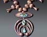 ●謎の存在、笛を服ながらいつも猫背で歩き回るココペリ、ネイティブアメリカンやインディアンジュエリーのデザインではよく使われるモチーフです、ニズムターコイスでも真意のほどは良く分かりませんが、多分商人ではないかとおもっています、旅をする商人、町に入るとき怪しいものではありませんよ〜、と笛で自分の位置を知らせます、ポピュラーなモチーフをニズムのオリジナルアクセサリーに近づけて制作しています。