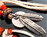 ●インディアンジュエリーの中でも柔らかさと繊細さ強く印象づけるシルバーのフェザー、街のインディアンジュエリーショップでもたいていウインドウで見かけるシルバーフェザー、風に揺れる感じやネイティブな雰囲気が都会的で人気がありますよね。ニズムターコイスでもそうですが人気のタイプはスターリングシルバーで制作されたフェザー。シルバーショップのセンスを判断する材料になるという人もいます。ご自分のセンスにあったものを選ぶのがいいですね、トレーディングビーズとの組み合わせもGOOD!!。