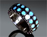 ●手作りのシルバーアクセサリーやターコイズ(トルコ石)アクセサリーといえばやはり最初にゲットしたいのがリング。トルコ石のセットされた, チョッとおしゃれなトルコ石リングもいいですよね、シルバーリングはあまり癖がないのでどんなファッションでもマッチしてしまいます。ニズムのシルバーアクセサリーの中で人気のあるトルコ石リングは少し凝ったデザインに人気があります、オリジナルアクセサリーに魅せられてしまった方。チョッとだけ他人にと違った個性を主張したい方たちに。